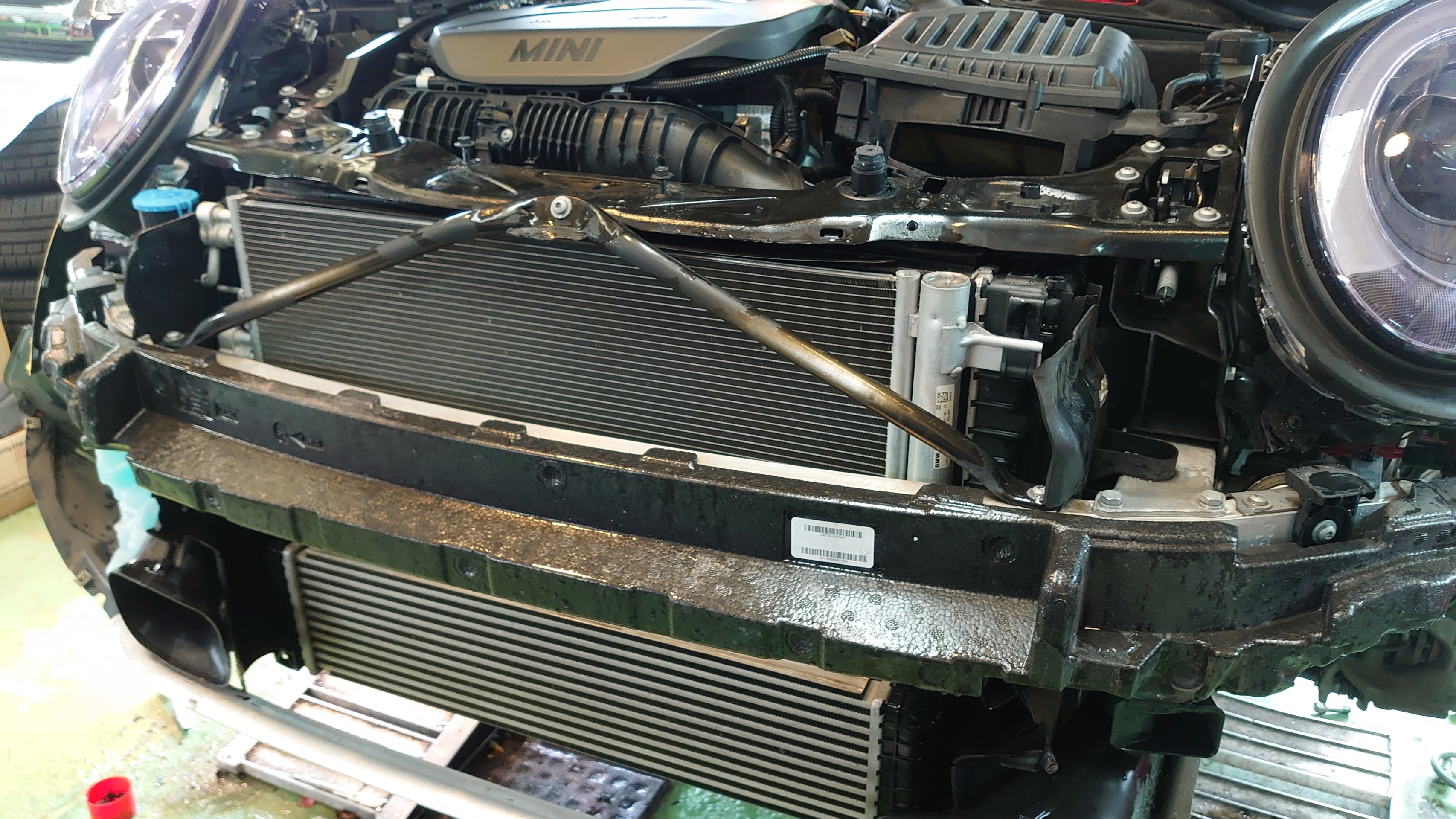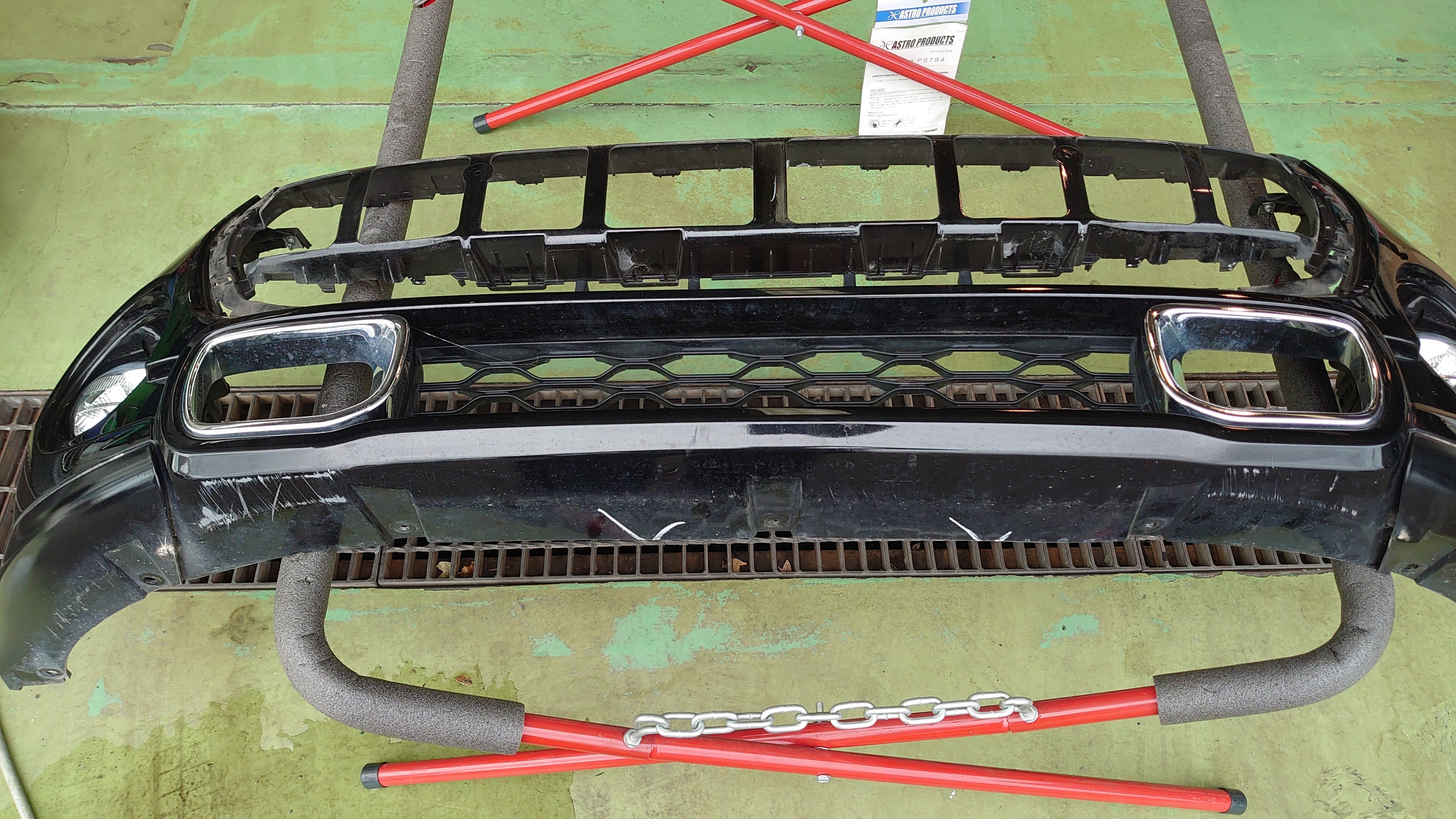 バンパーを脱着しての交換作業をさせていただきました。