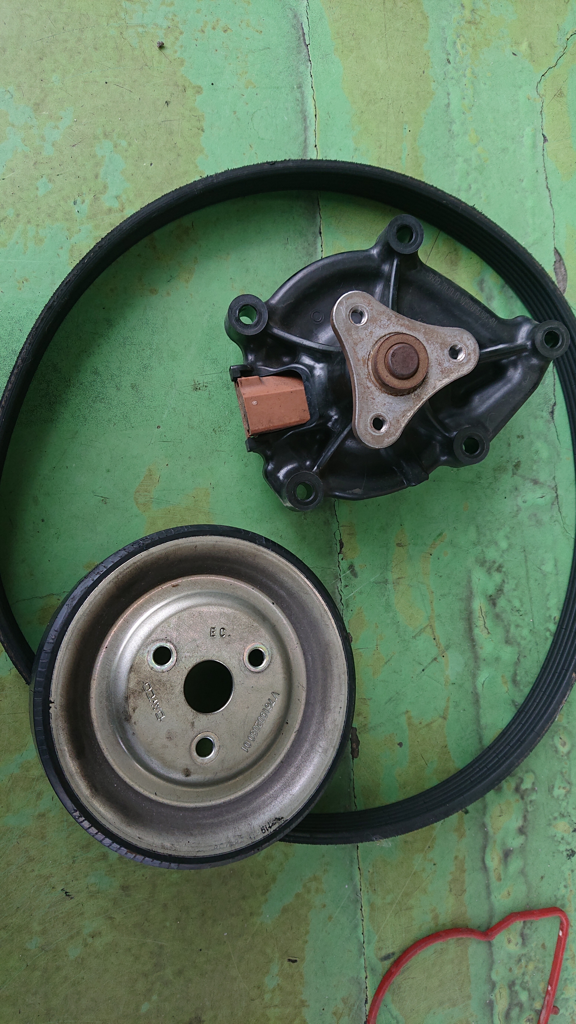 その後は、定番トラブル部分なウォーターポンプとプーリーがヤバそうな見た目でしたので、トラブルになる前にリフレッシュ