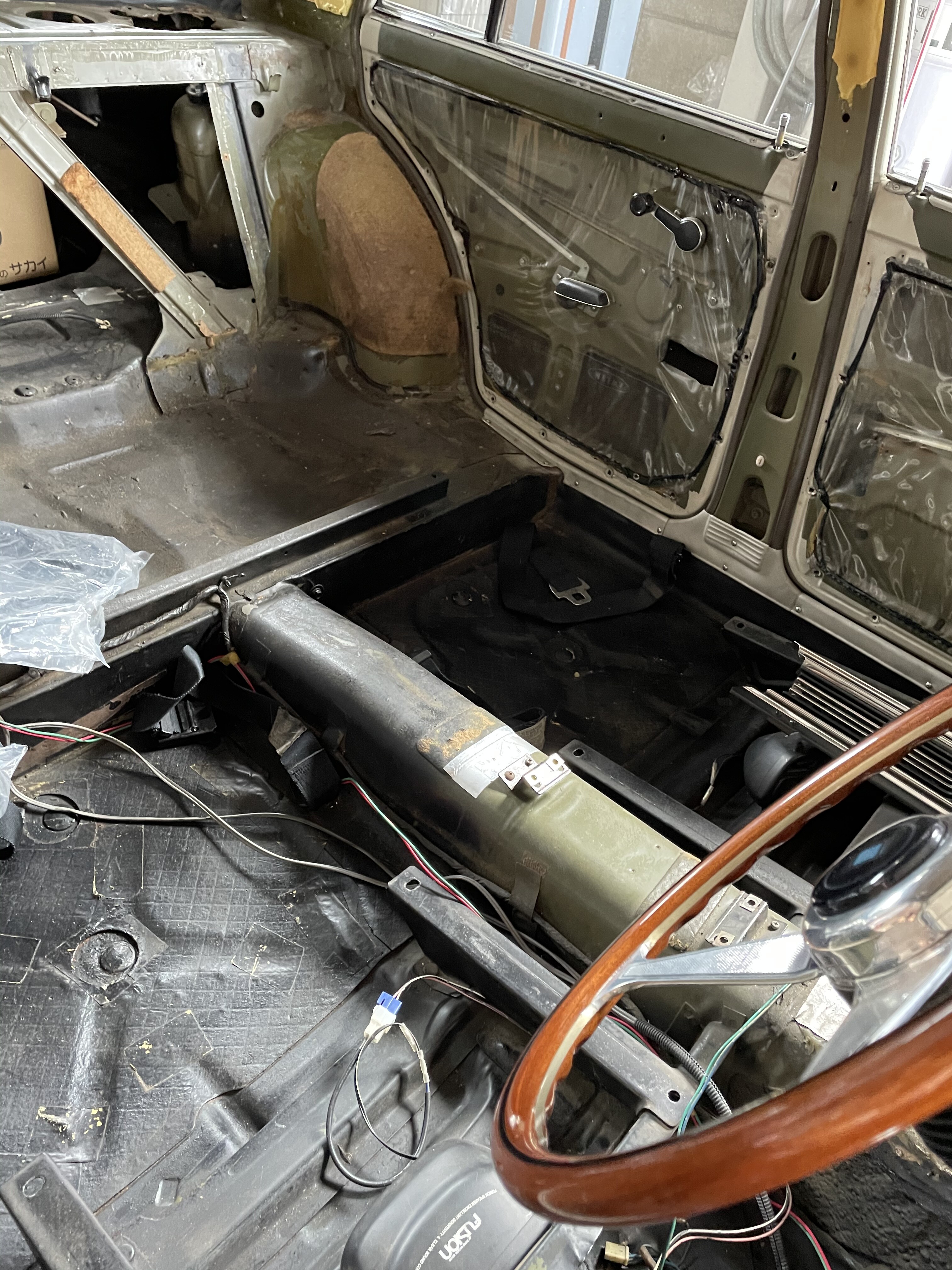 それからミッションも降ろしてブレーキやら色々な部品を外してペイントの下準備をしていきます