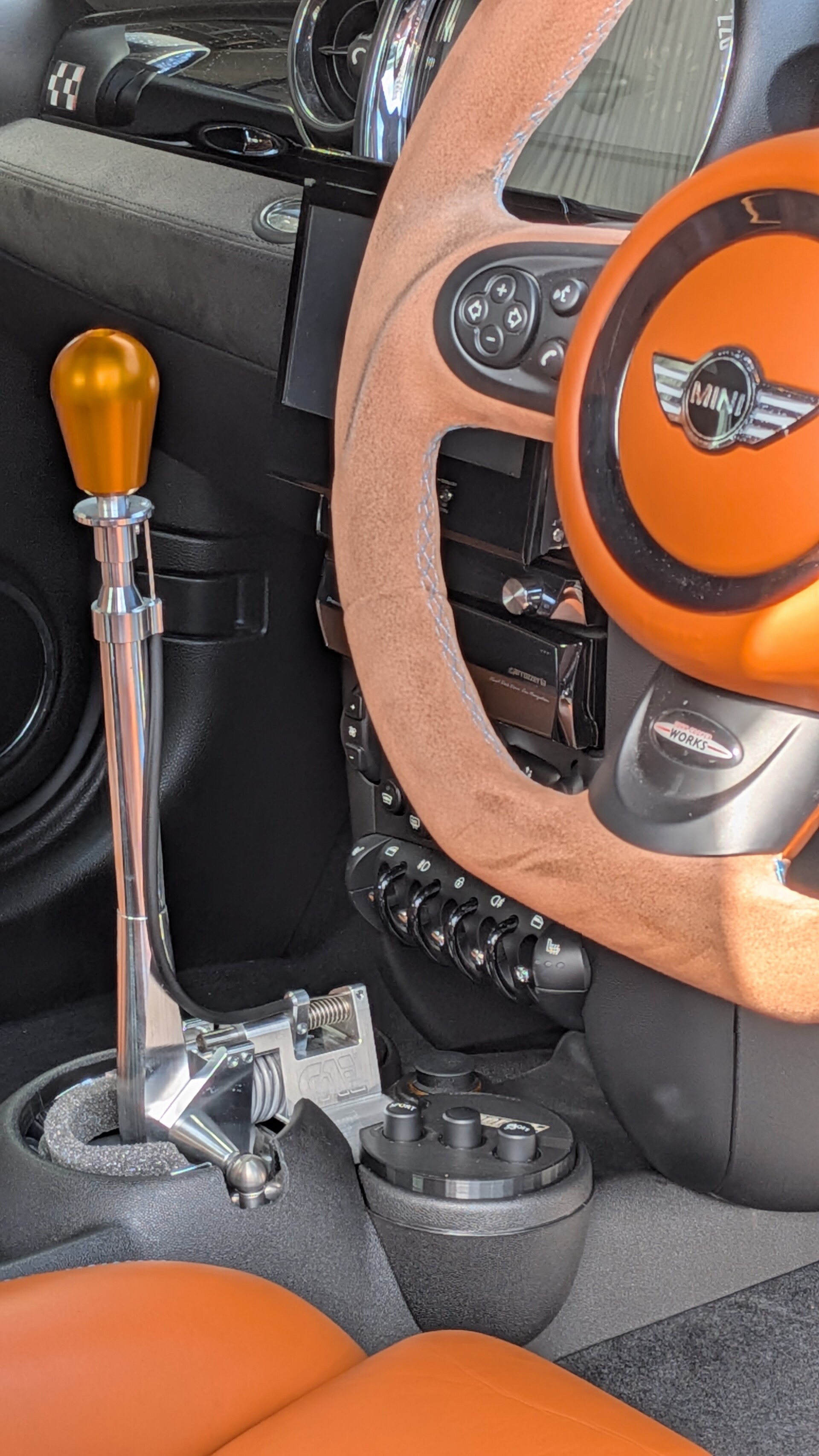 R56 BMWミニ JCWがCAEウルトラシフターのお取り付けにて御入庫です。( ̄▽ ̄)ゞ