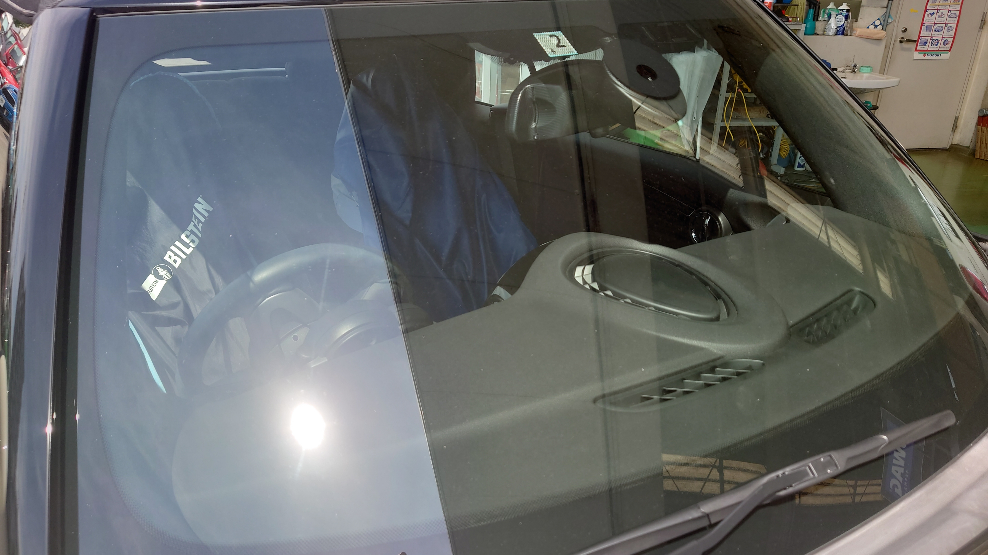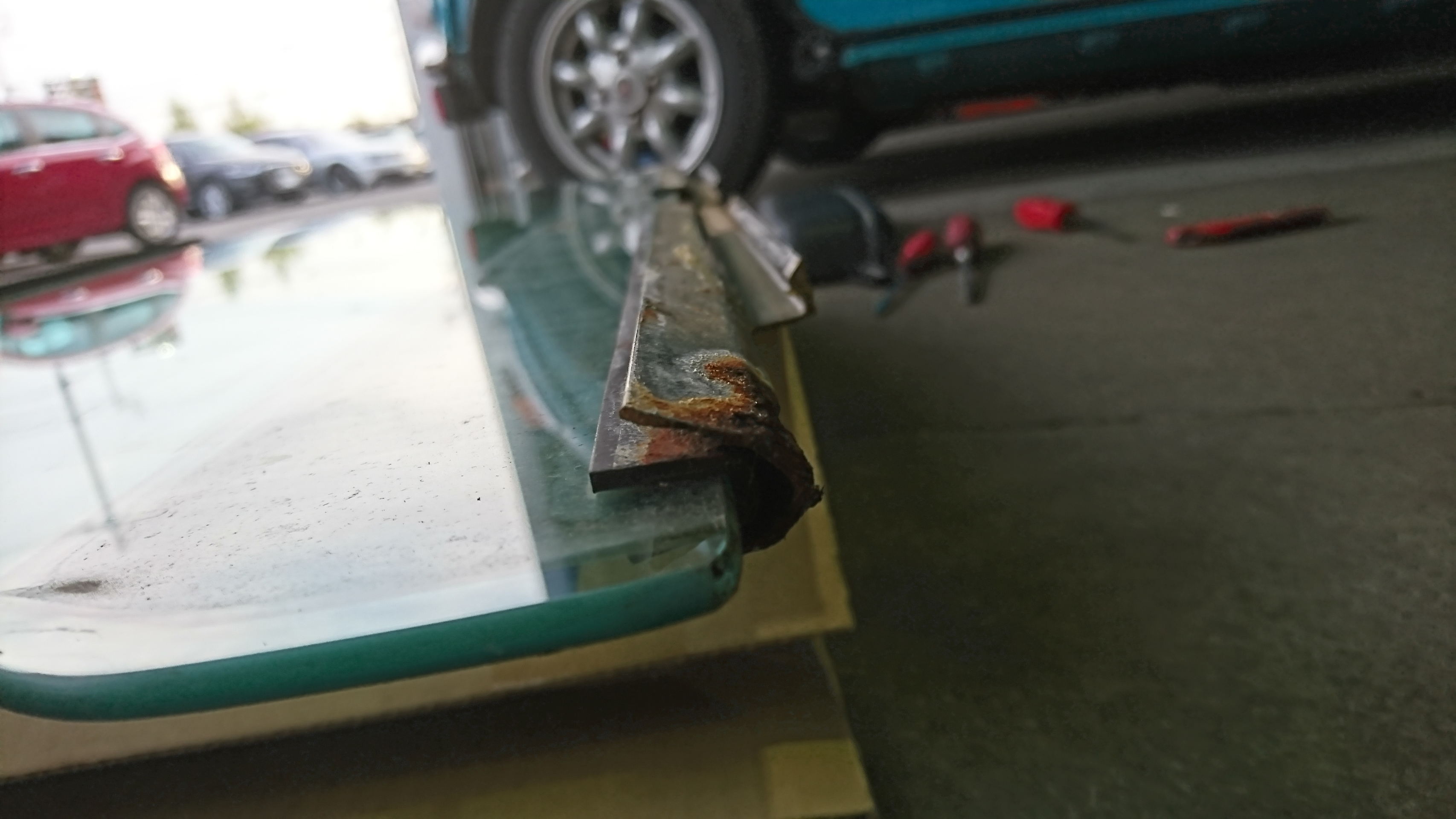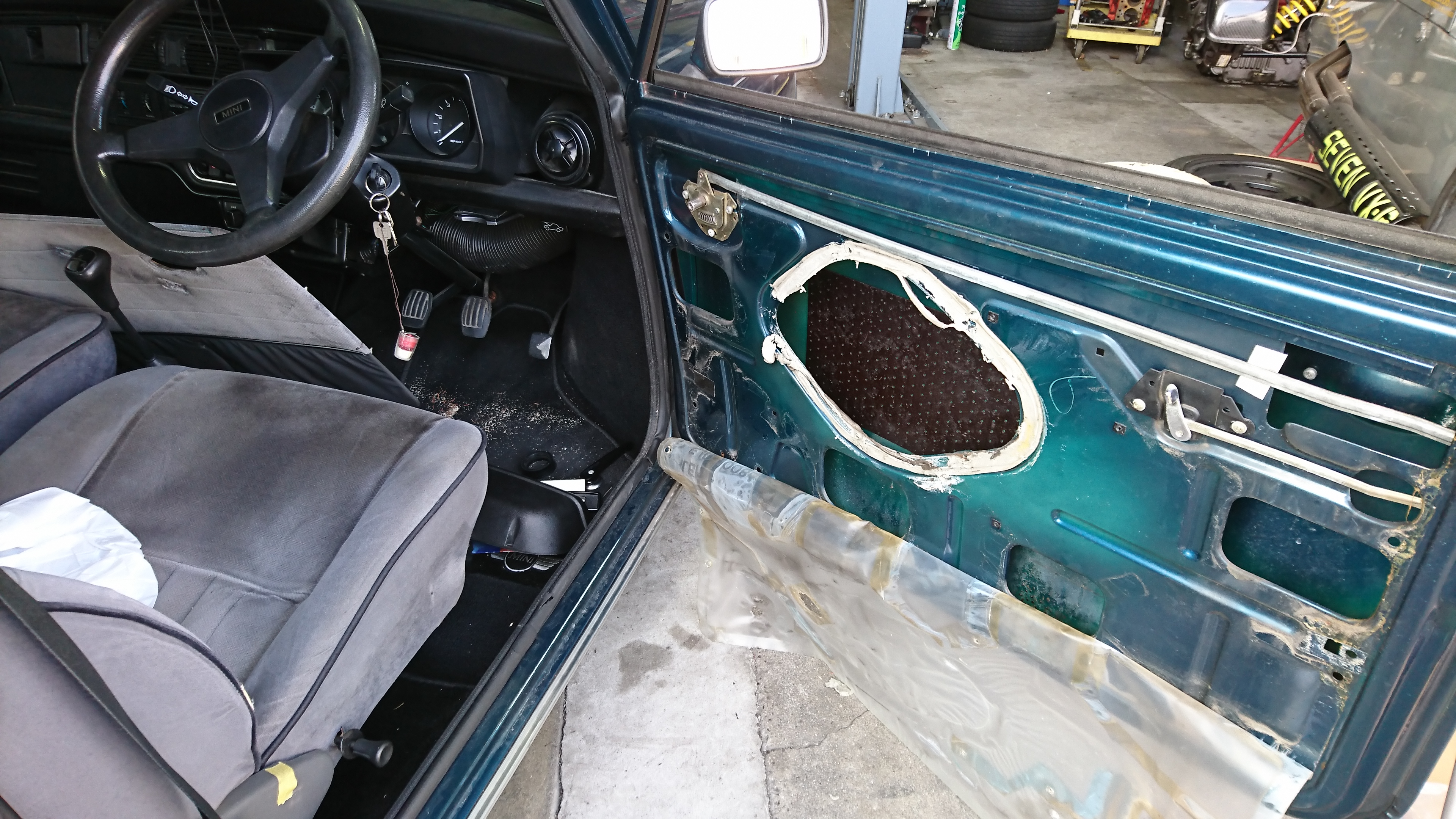 R57 BMWミニ コンバーチブル クーパーの幌のガラスが。。。にて御入庫です。( ̄▽ ̄)ゞ