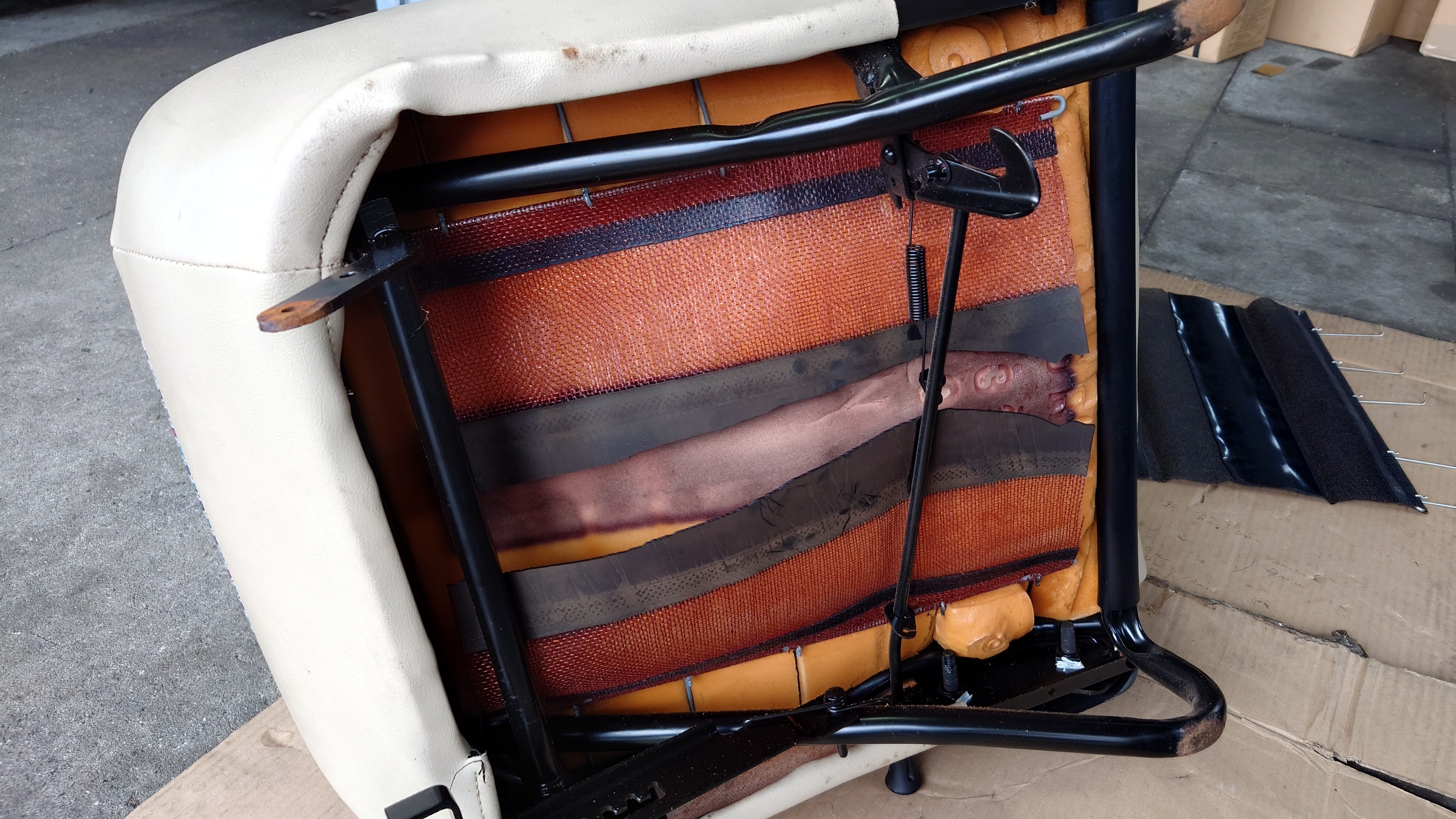ローバーミニがオイル交換で御入庫でしたが、助手席シートが、、、です。( ̄▽ ̄)ゞ