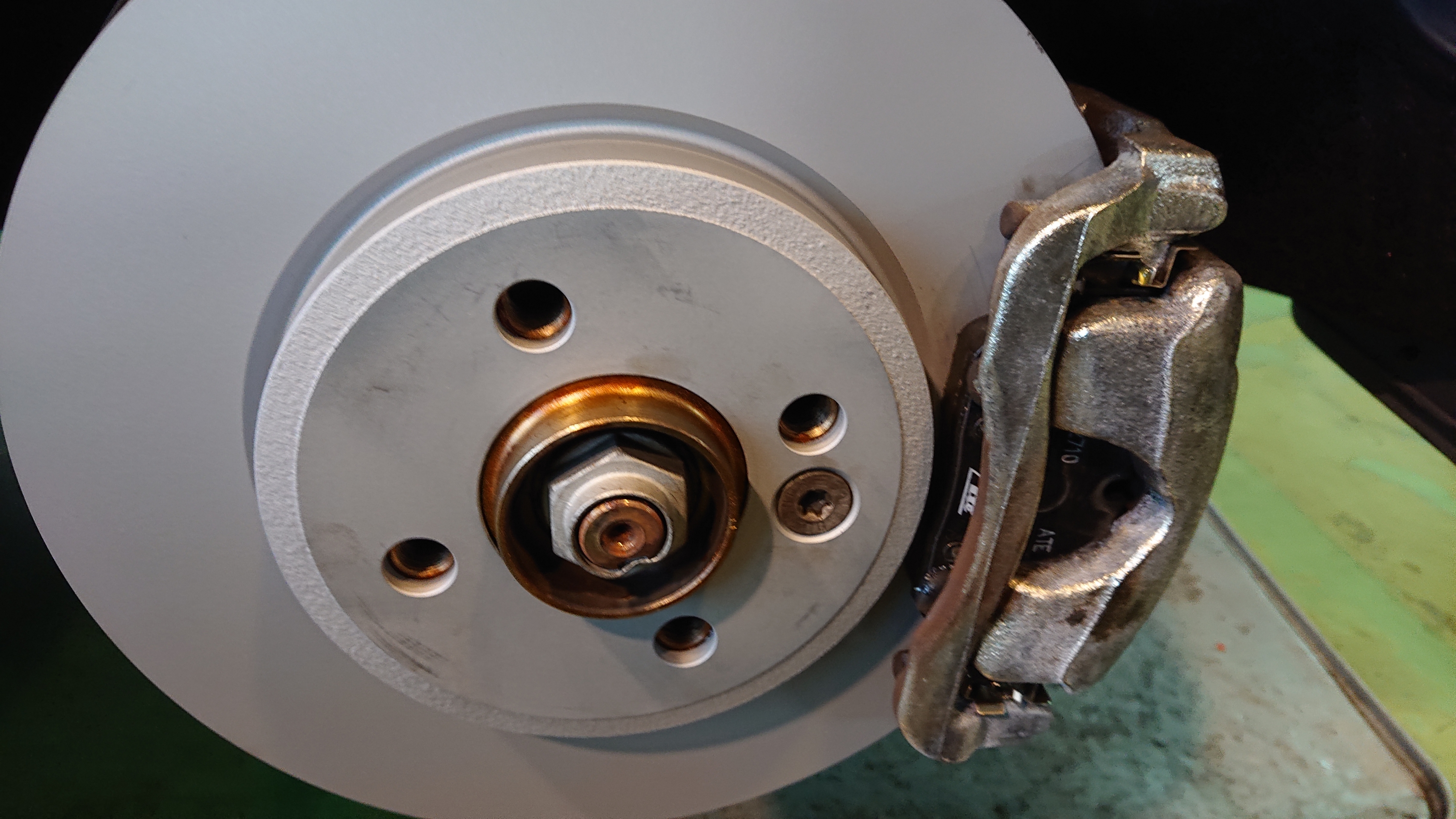 摩材部分を100%使用してしまって金属プレート部が接触してる。。。と言う事で、リアブレーキローター・ブレーキパッド、ついでにフロントも低ダストに変えとく!と言う事で交換させていただきました。