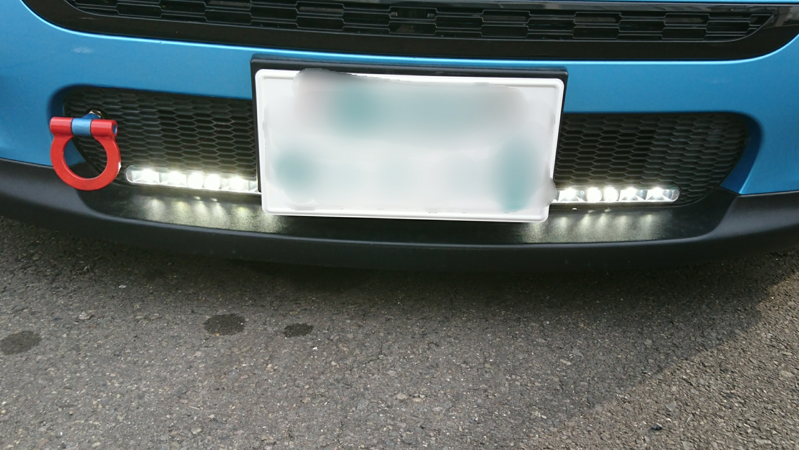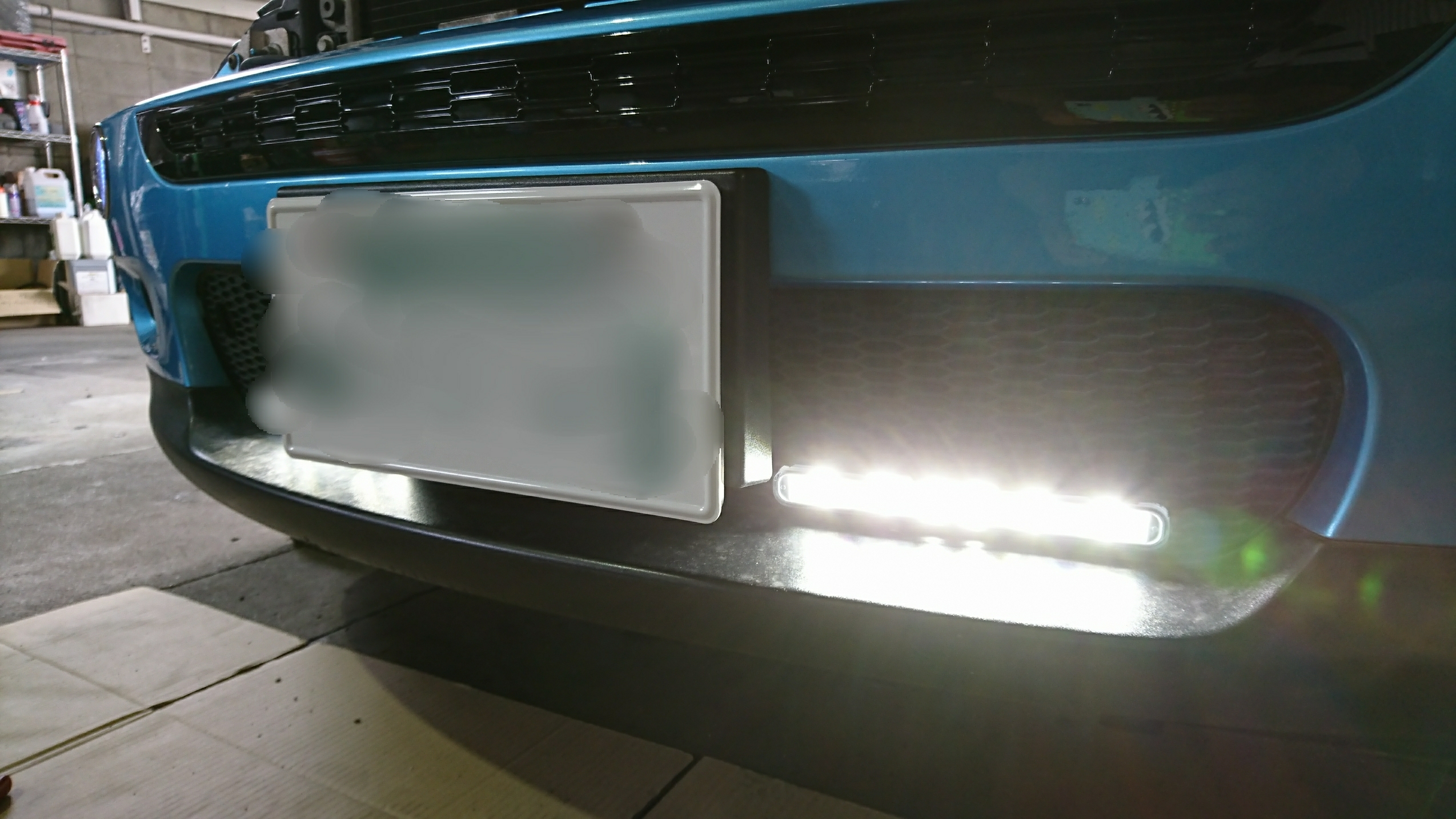 今回はお客さんのご要望でフロントバンパー下部・マフラー上部にも配置してみました。