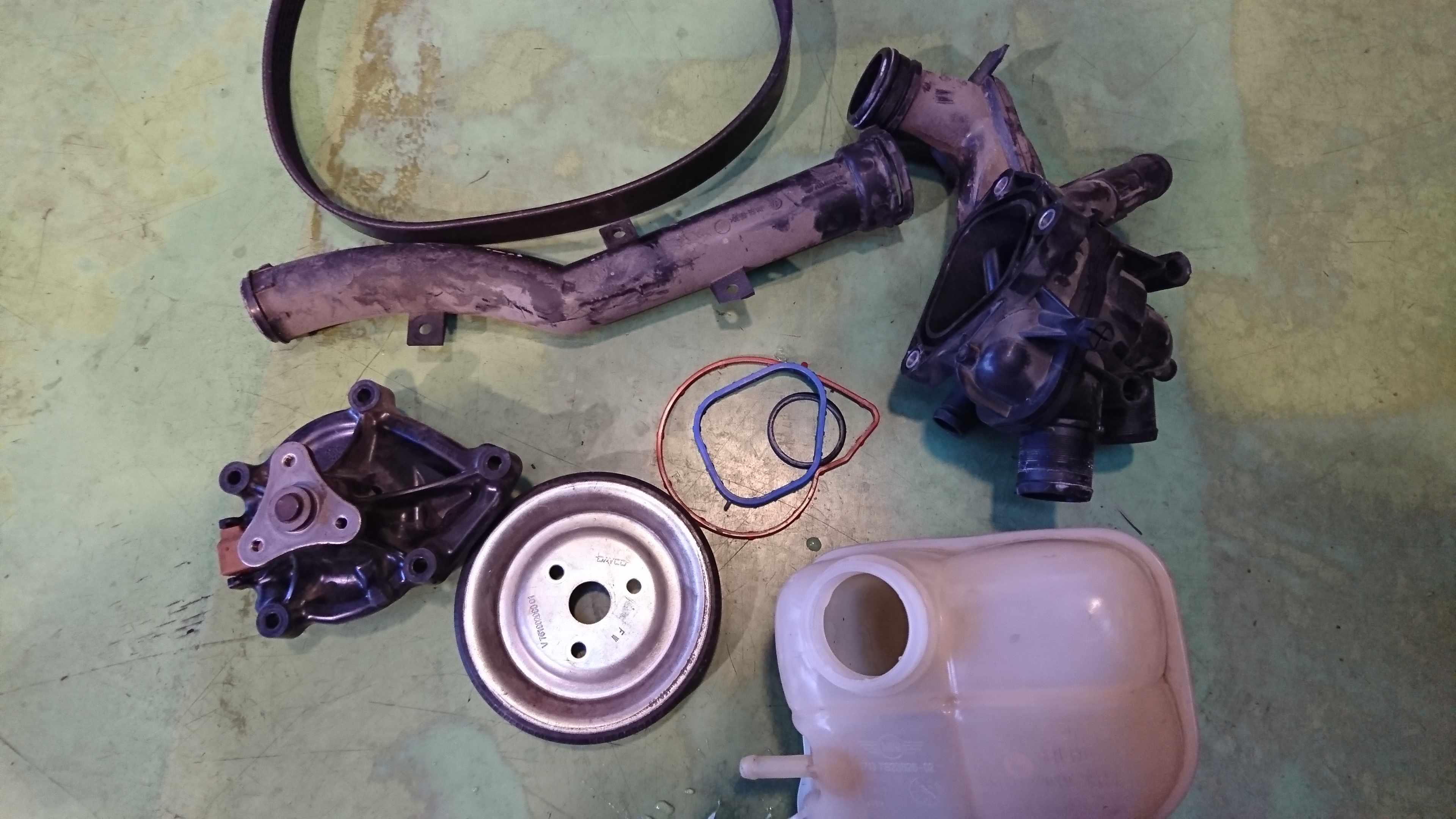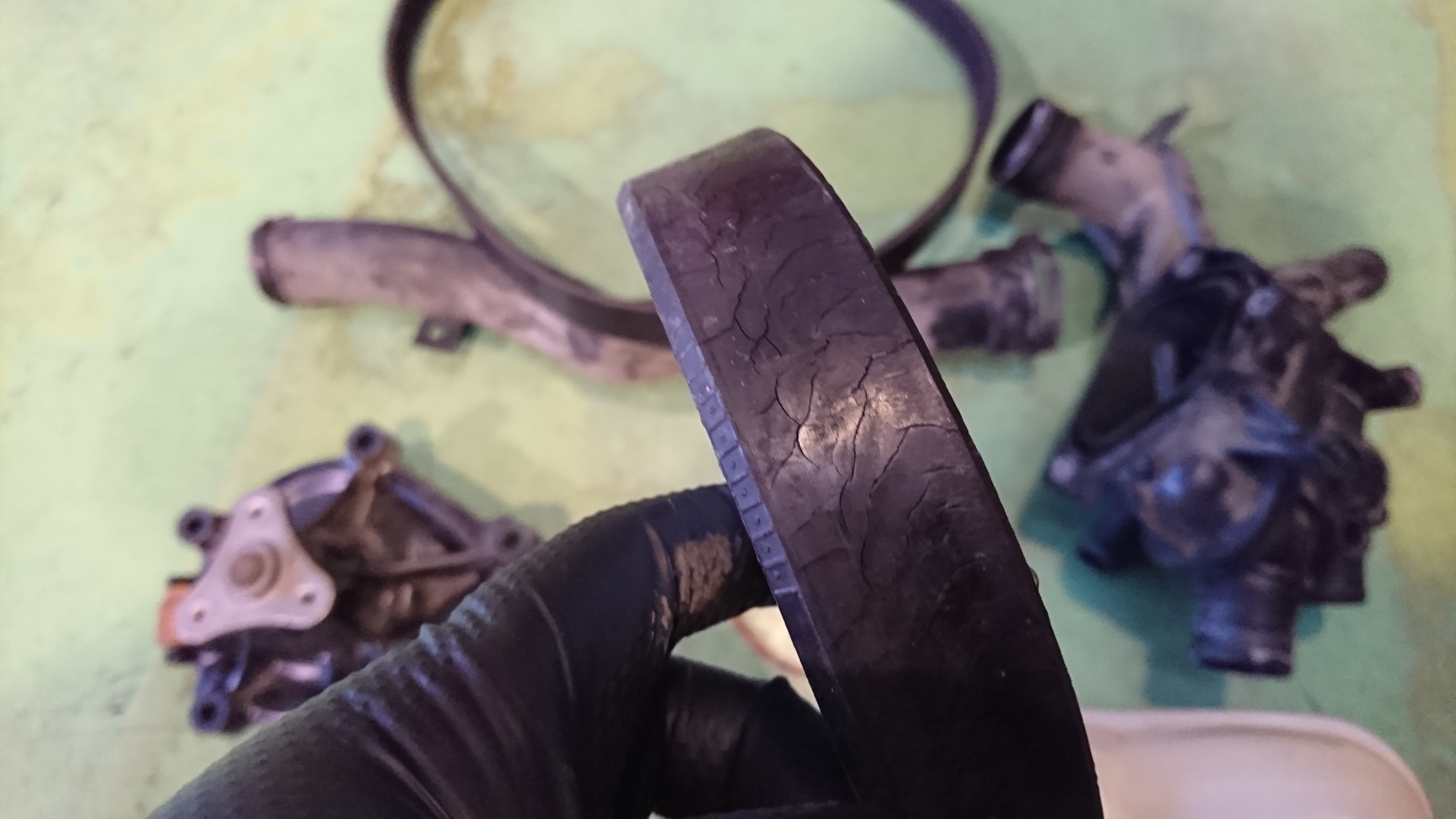 エアコンコンプレッサーのプーリーが破損してファンベルト等をぶち切ってました(-_-;)