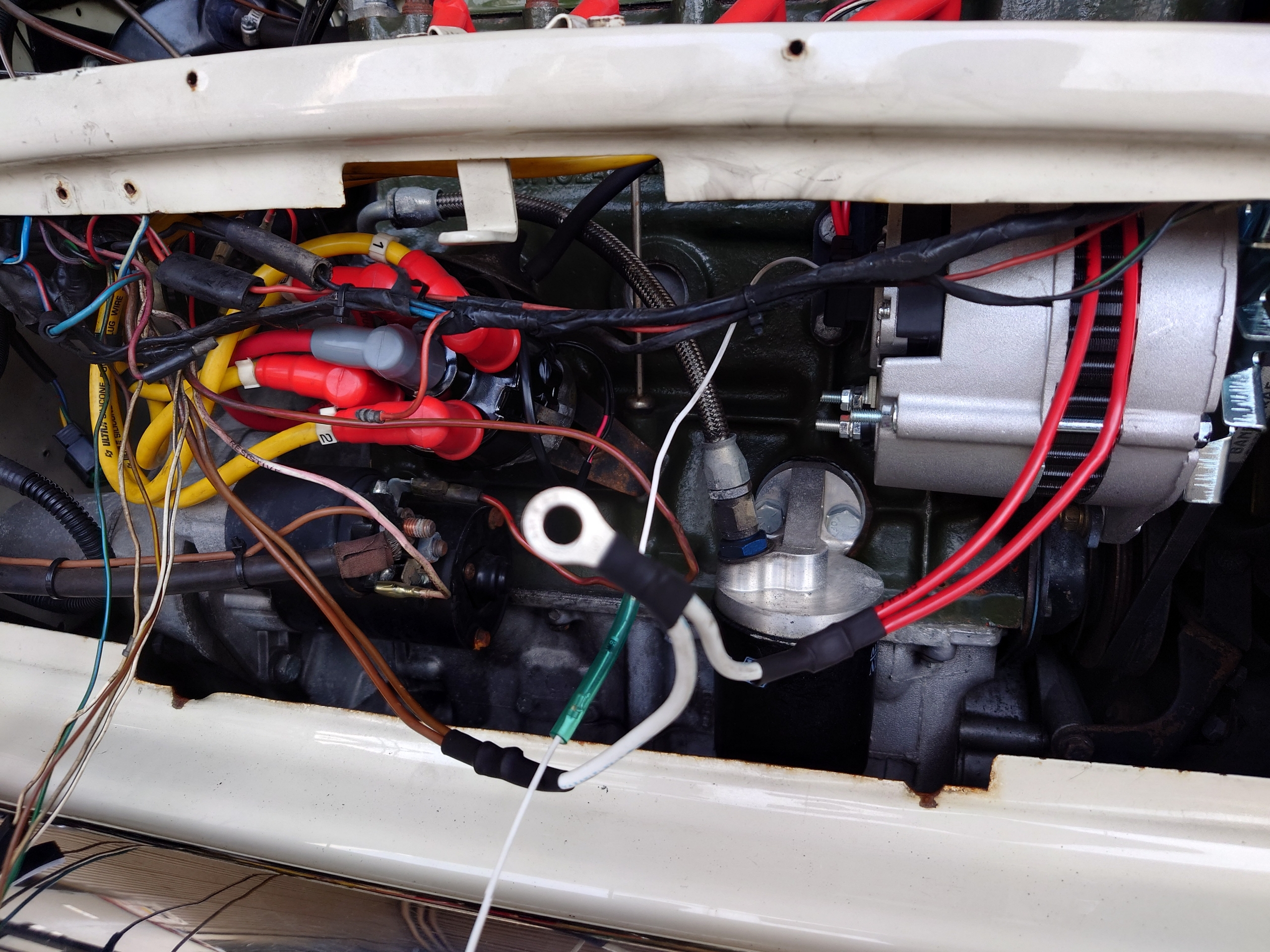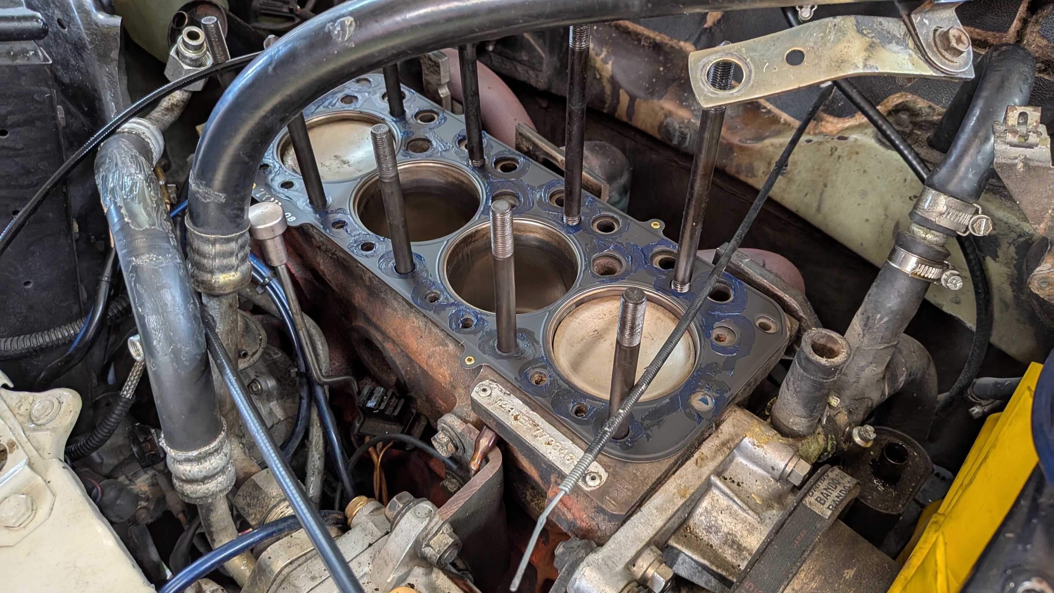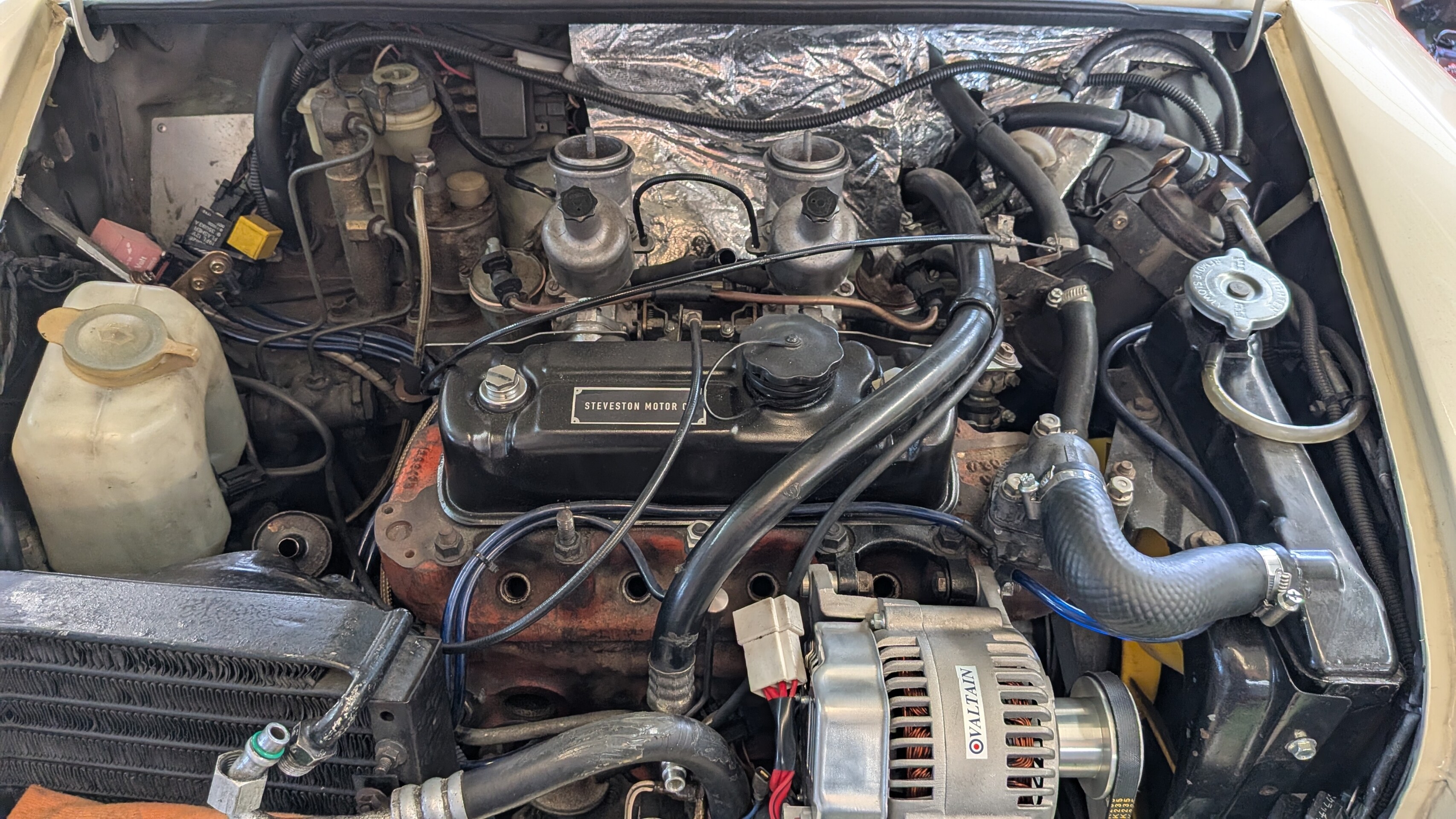 なんか水(クーラント)が漏れてる気がするということで、オイル交換も併せて見といて!ということでしたが、ラジエーターホースが緩くなっておりそこから滲んでおりました。