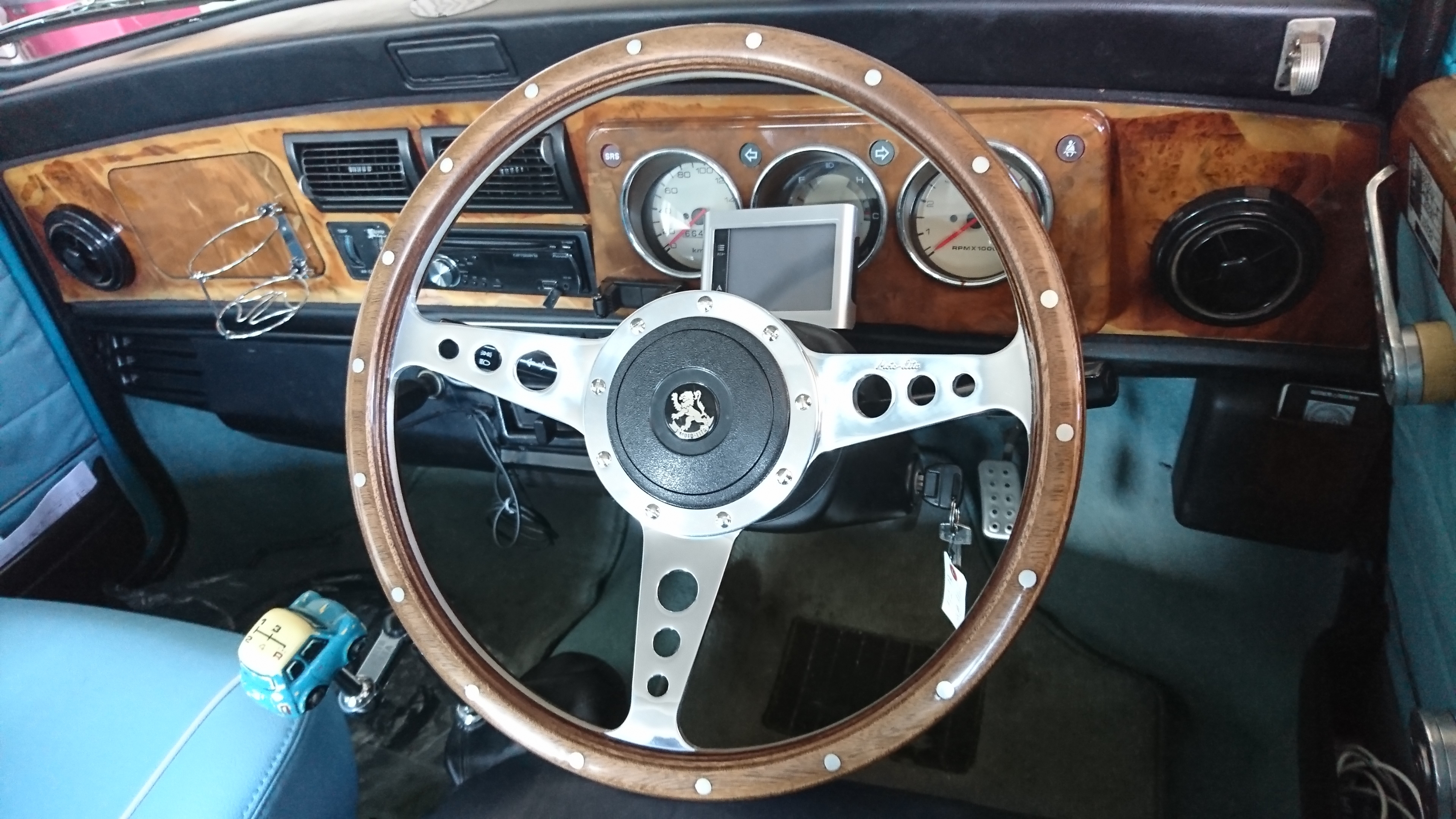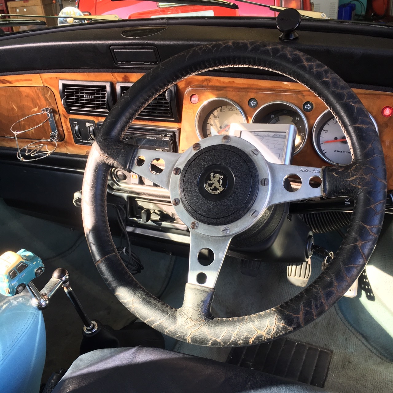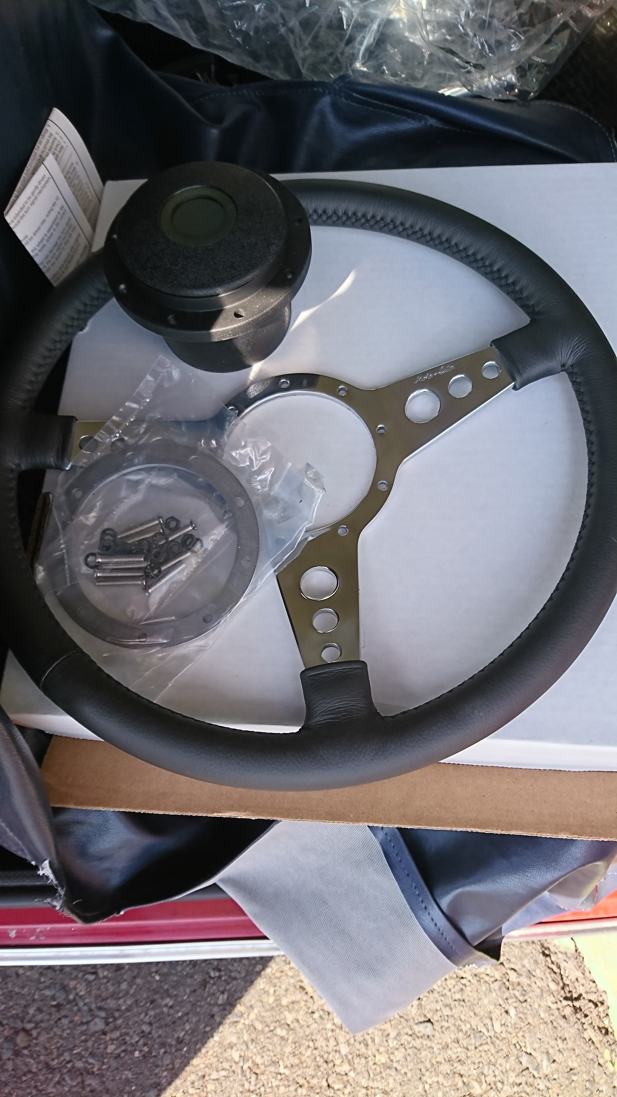 モトリタのステアリングハンドルがついておりましたが、小径のステアリングにしたいという事でMOMO T-1002のTEAM300を装着〜
