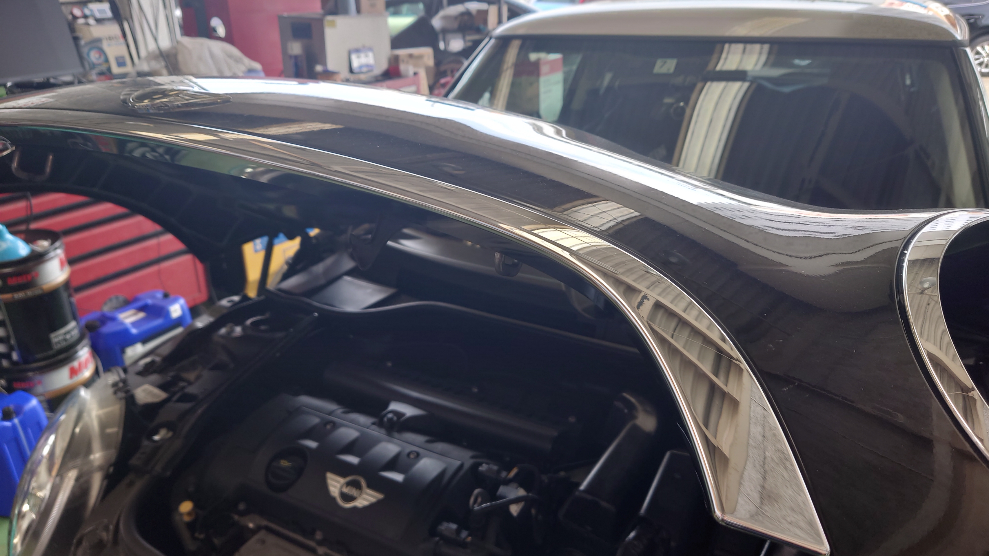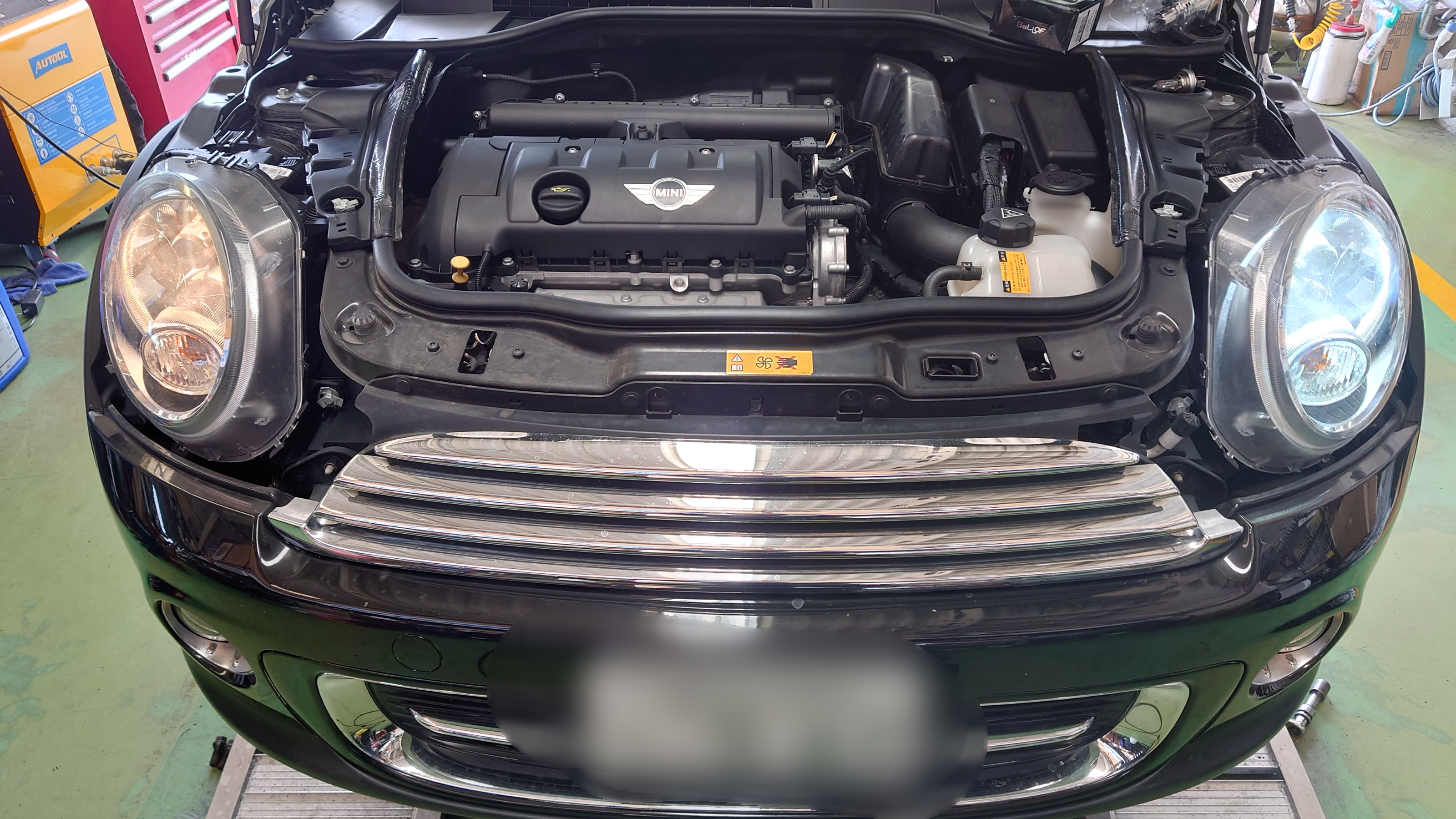 ローバーミニがヘッドライトの交換にて御入庫です。( ̄▽ ̄)ゞ