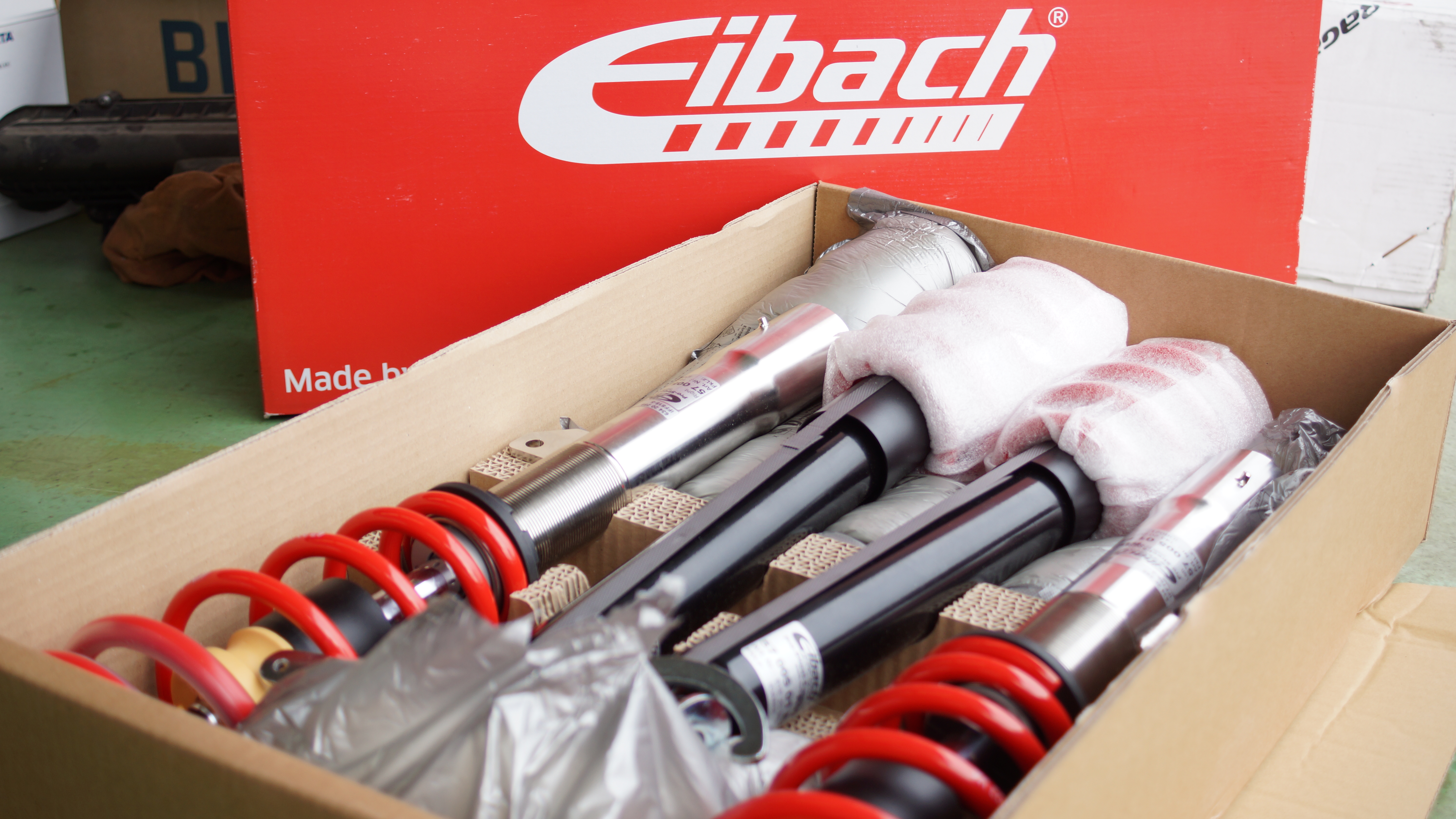 先ずは、ずっと下げたかった!と言う事で、Eibachローダウンスプリングにてローダウンです。